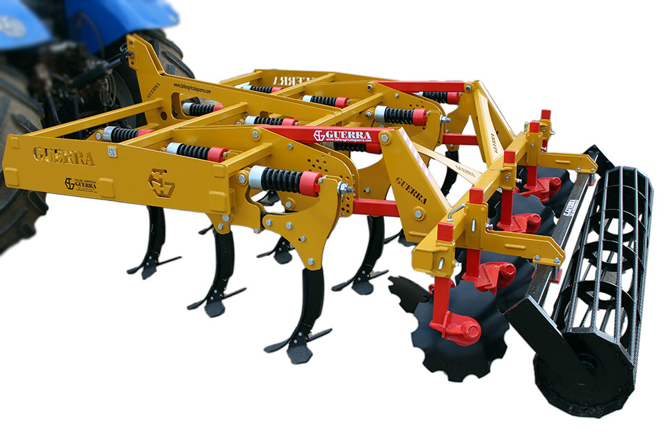 Équipé de trois rangées à dents, de haut dégagement et un niveau pour les labours de abondant déchaumage et décomposition du sol, avec de différents profondeurs, selon le modèle de supplément à adapter.