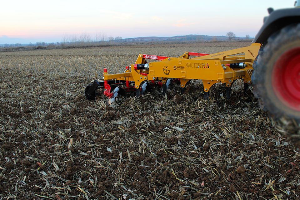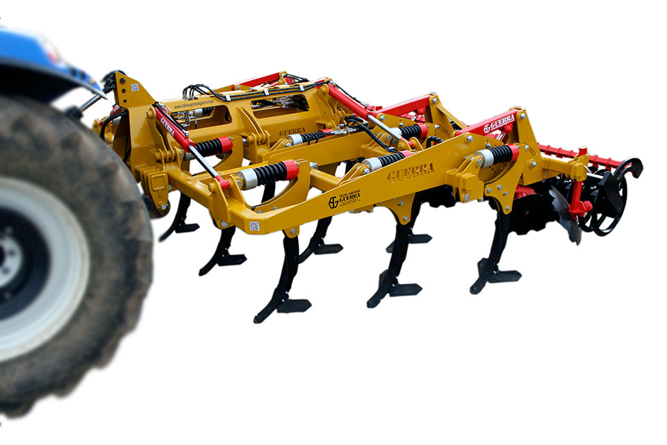 Com três fileiras de braços, com grande amplitude e altura, para tarefas de restolho e descompactação do solo, alcançando diferentes profundidades segundo o tipo de complemento a adaptar.